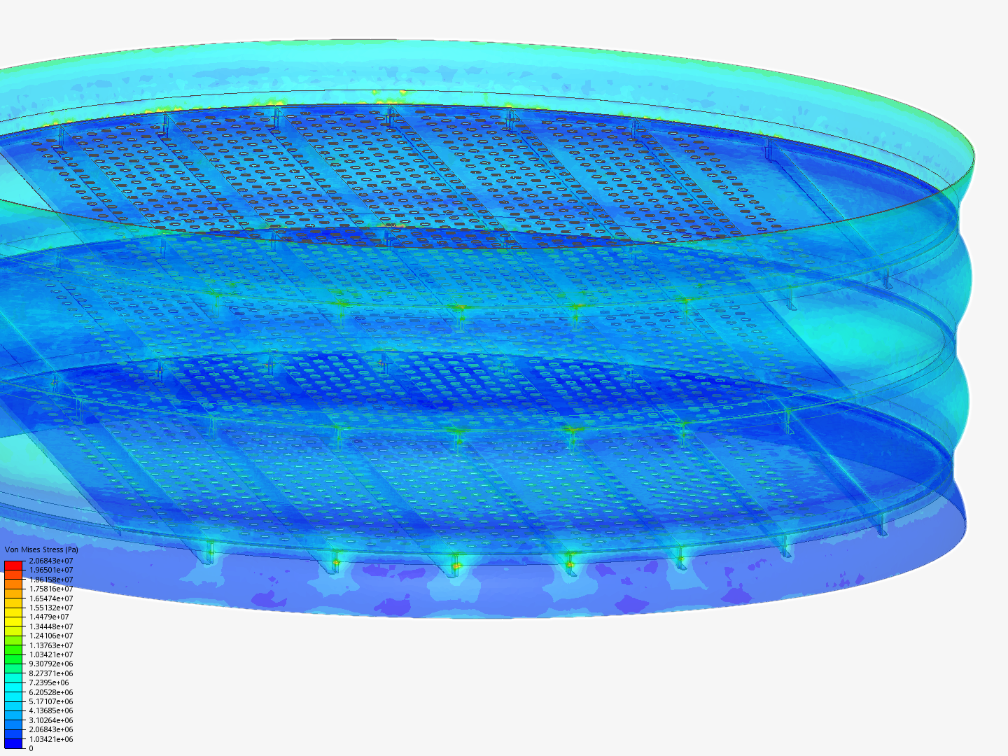 3 tray section of a distillation tower with curved shell
