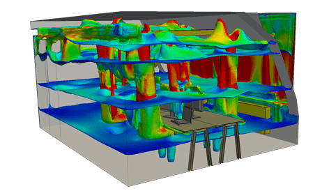 - How engineers can analyze their air conditioning design and thermal comfort in a building or space (office spaces, schools, theaters, commercial or residential buildings) with cloud-based CFD